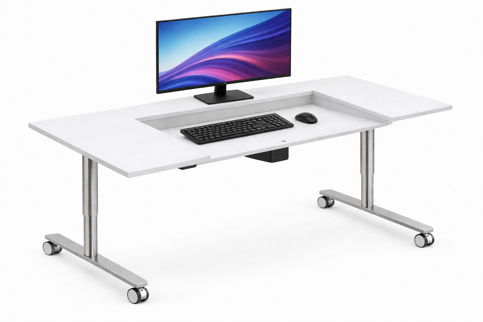 Den rörliga främre delen av skrivbordsskivan aktiverar musklerna i skuldror, nacke och armar vilket ökar blodcirkulationen. Därmed minskar risken för smärta och besvär kopplade till statiskt arbete.